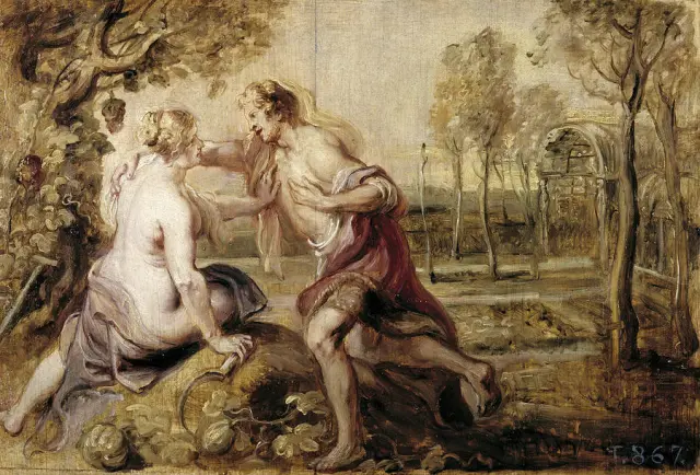 Vertumnus en Pomona in tuin door Peter Paul Rubens. Coll. Prado Madrid